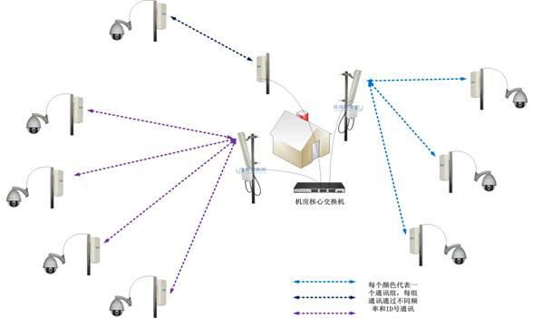 每個監(jiān)控點采集的視頻信號用HT-5830F室外天線一體化無線網(wǎng)橋把信號調(diào)制為微波信號打到電信網(wǎng)路接入的地點。在該點可以接入多個終端網(wǎng)絡(luò)信號并且匯聚。