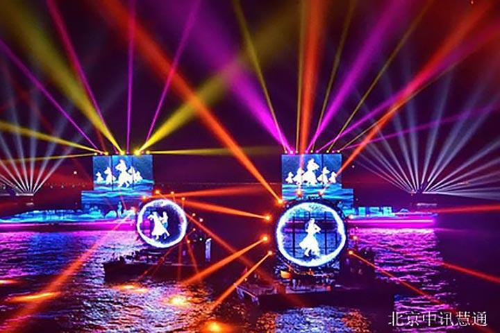 在節(jié)目開演的前兩個月,九州港項目負(fù)責(zé)人找到我們公司,尋求我們的幫助,項目現(xiàn)場主要在船舶上放置多媒體裝置(大屏、燈光、音箱、機(jī)械噴泉等裝置),表演節(jié)目的不同特效。6艘小型表演船、2艘控制表演船、2艘觀眾船,共計10艘船,實現(xiàn)船舶間的無線網(wǎng)絡(luò)信號傳輸,確保每艘船都有穩(wěn)定清晰的網(wǎng)絡(luò)信號。