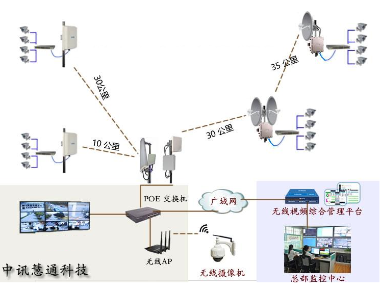 采用無線網(wǎng)橋的無線視頻監(jiān)控系統(tǒng),就是通過定點設立監(jiān)控攝像頭,然后通過無線網(wǎng)橋將監(jiān)控攝像頭的視頻影像實時傳輸回邊防檢查站。