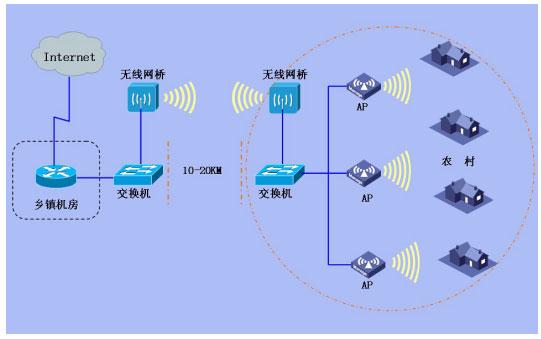 無線技術(shù)的成熟與發(fā)展在越來越多的場合得到推廣及應(yīng)用,并得到各大運營商的青睞運用到各種場合,隨著農(nóng)村的發(fā)展,人們生活水平的逐漸提高,對上網(wǎng)需求有著更大的提高。然而,農(nóng)村地域廣闊,地形環(huán)境復(fù)雜多樣,居住地間距離較遠(yuǎn)且分散,網(wǎng)絡(luò)建設(shè)的投資水平和消費水平的限制等等諸多困難,制約著農(nóng)村信息化建設(shè)的發(fā)展。農(nóng)村一般人口居住均在方圓3公里范圍內(nèi), 且高層建筑較少, 房屋多為磚木結(jié)構(gòu)建筑。根據(jù)無線微波的特點,選擇合適的制高點架設(shè)無線設(shè)備并配合合適的接收終端,在半徑5公里范圍內(nèi)能夠達(dá)到高穩(wěn)定性高速率無線鏈路,完全滿足農(nóng)村用戶上網(wǎng)需求,無線寬帶業(yè)務(wù)在農(nóng)村有著不可比擬的優(yōu)勢:建網(wǎng)成本低、一次性投入資金少、運營與維護成本低、建網(wǎng)速度快、高可靠性與超強的可擴展性,不僅可以為農(nóng)民提供方便、快捷、費用低廉的寬帶入戶方式,也非常適應(yīng)農(nóng)村網(wǎng)絡(luò)建設(shè)逐步發(fā)展的需求。